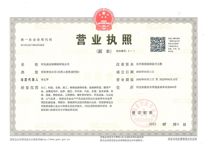 河北成达玻璃钢有限公司,始建于1976年,是一家集研发、生产、销售玻璃钢系列产品的大型建材民营企业。公司注册资金10300万元,占地151420平方米,现有职工720人,高级工程技术人员20人、中级52人、初级88人、其中聘请了国家级技术专家6人, 建立了科研院所长期合作机制,公司技术力量雄厚,生产设备先进,其中30T液压往复式生产线4条、20T液压往复式生产线12条、10T液压往复式生产线8条。各种规格玻...【了解更多】
